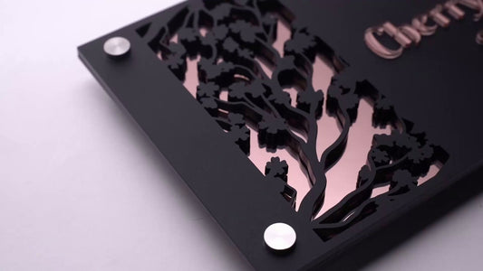 Cherry Blossom - Acrylic Name Plate with Raised Lettering
