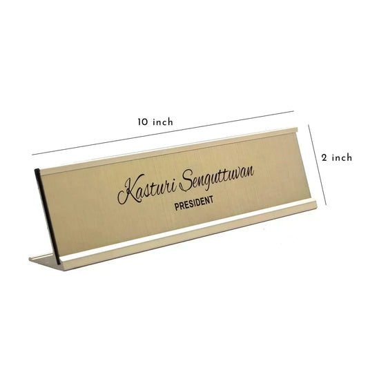Slimline Classic Desk Name Plate - Gold Stand, Gold Insert