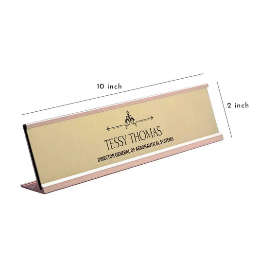 Slimline Royale Desk Name Plate - Rose Gold Stand, Gold Insert
