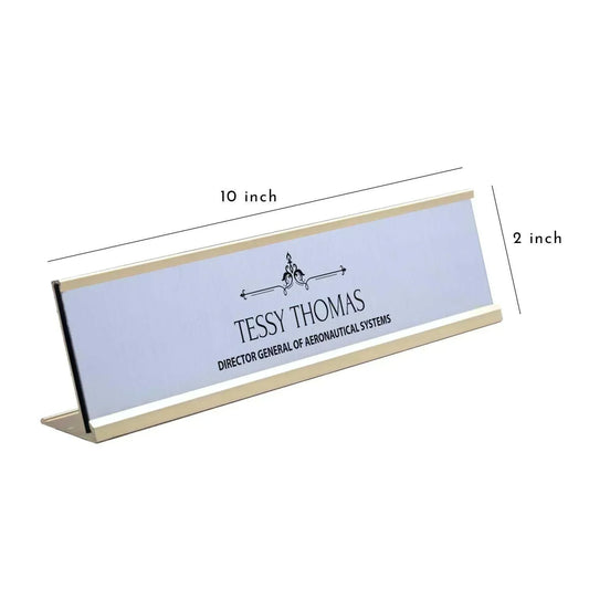 Slimline Royale Desk Name Plate - Gold Stand, Silver Insert
