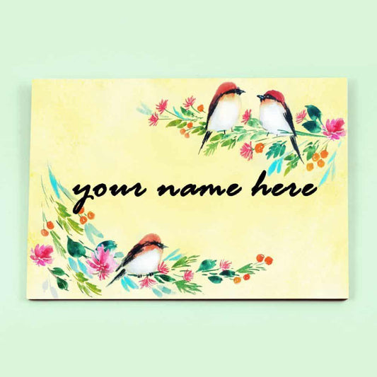 Three Perching Birds - Hand-painted Floral Nameplate - Rectangle