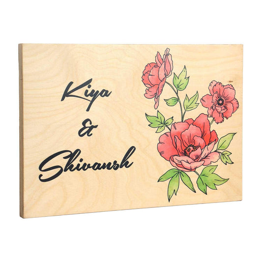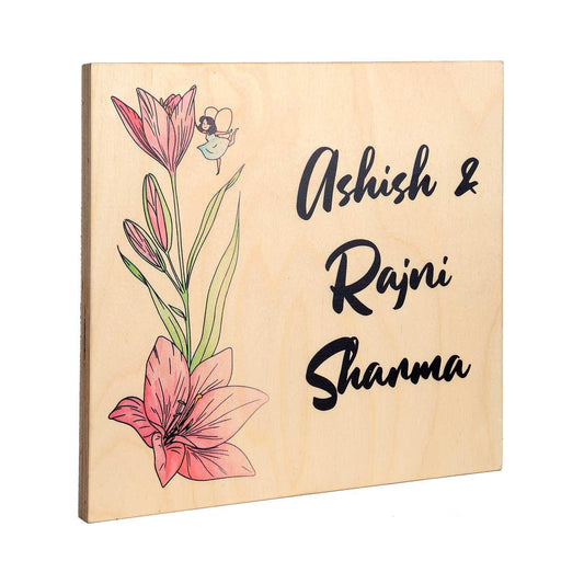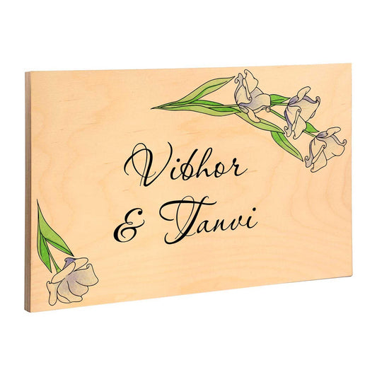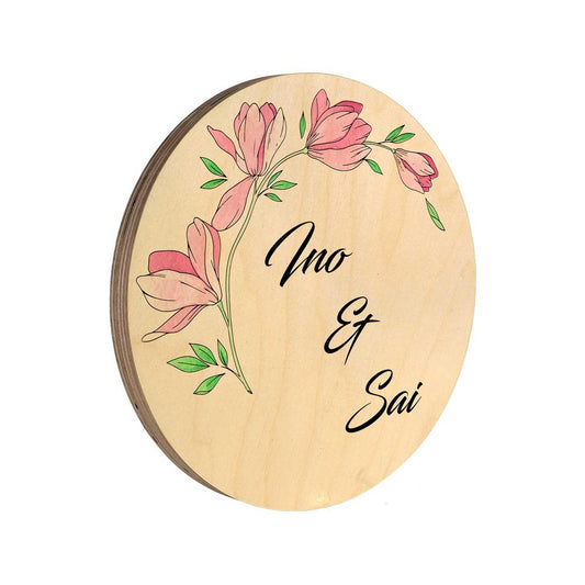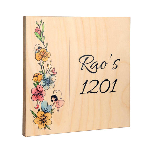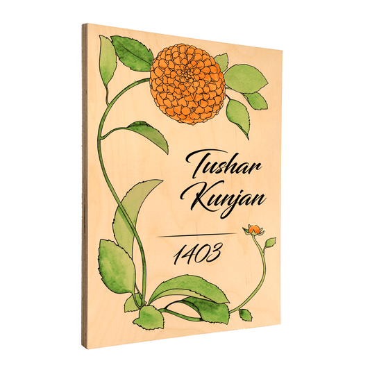 Each nameplate in the collection carries a beautiful floral illustration on wood. These illustrations have been exclusively created for Housenama customers by Itisha Upadhyay - an artist popularly known by the moniker 'Yellow Mellow Cat.'