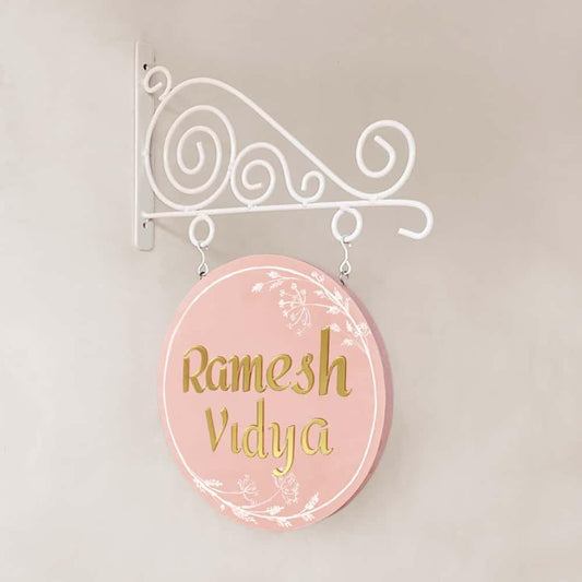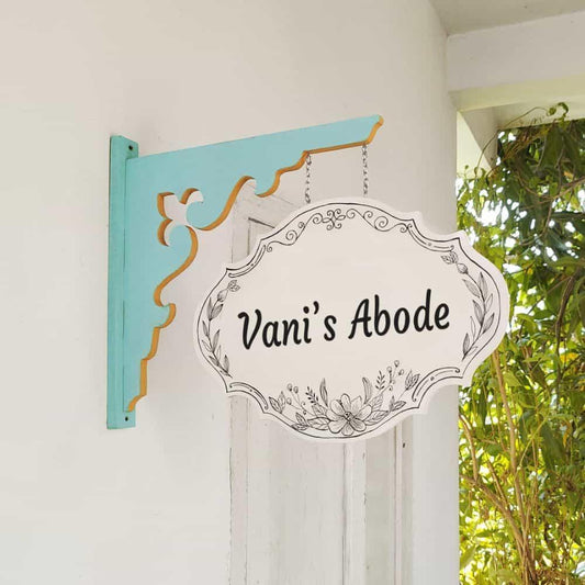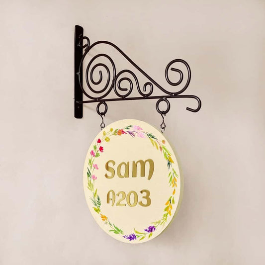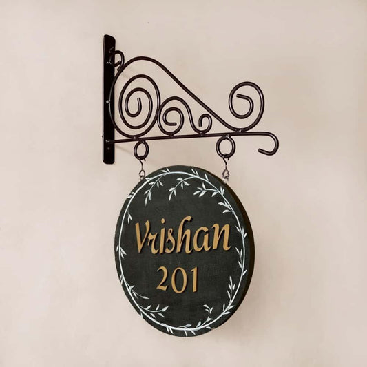 Hand-painted Hanging Name Plate - Ivory Victorian with Graphite Black Bracket