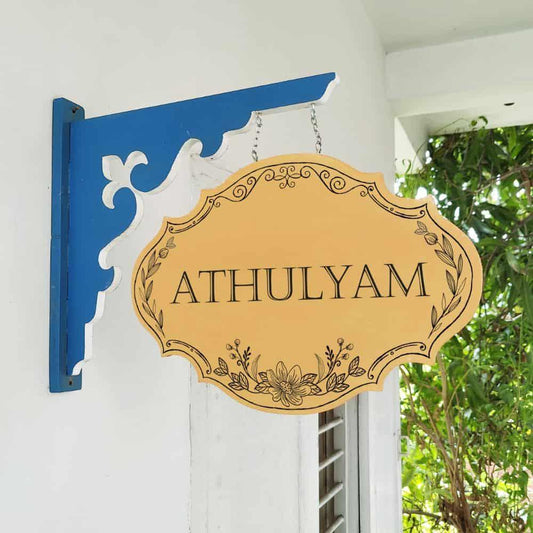Hand-painted Hanging Name Plate - Teal Victorian Yellow Red Border