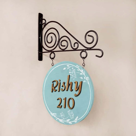 Soft Azure - Minimal Hand-painted Hanging Nameplate