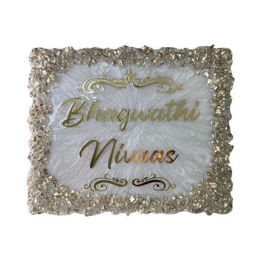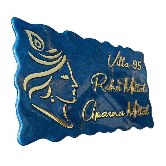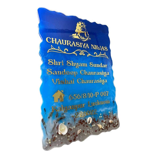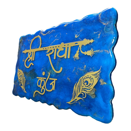 Radha Kunj - Pearl Blue with Golden Blend Resin Nameplate