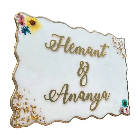 Floral Bliss - White Resin Nameplate with Pressed Flowers