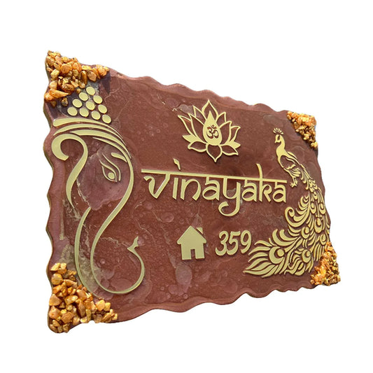Divine Aura - Ganesha-themed Metallic Brown Resin Nameplate