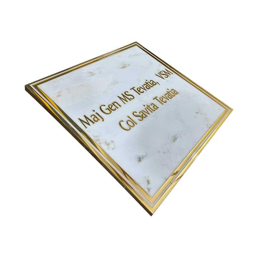 Tevatia - Marble White and Gold Resin Nameplate