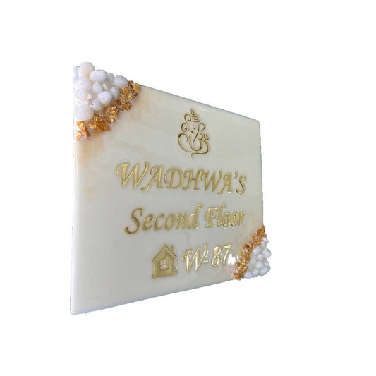 Krishnaganesh - Pearl White Swirl Design Resin Nameplate