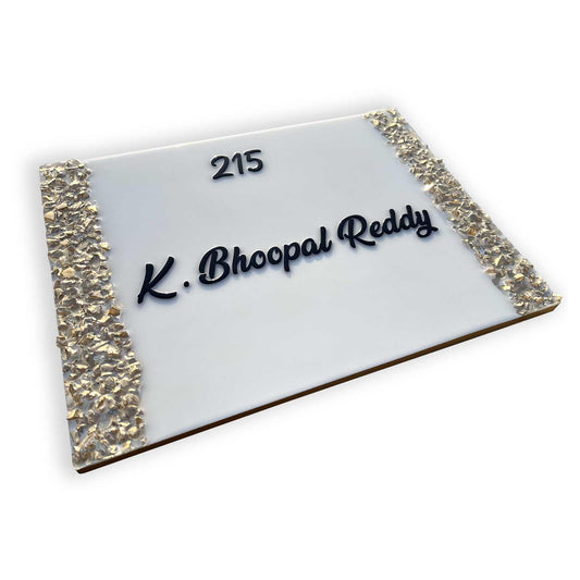 Bhoopal Reddy - White with Gold Crystal Resin Nameplate