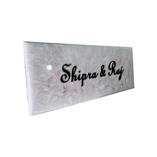 Shipra & Raj - Italian Marble White and Brown Resin Nameplate