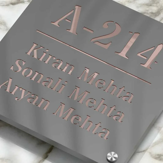Strata Dualtone Square Nameplate - Dark Grey & Mirror Rose Gold