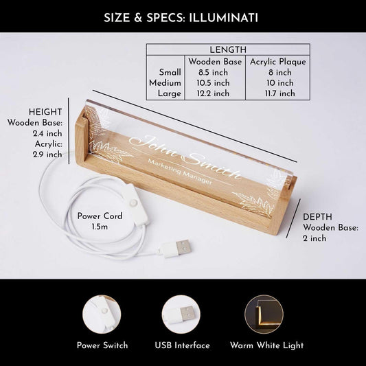 Illuminati Desk Nameplate for Executives (includes LED Lighting)