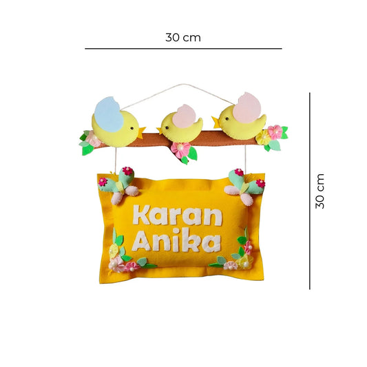 Bird Family with Two Pillows - Felt Name Plate for Siblings