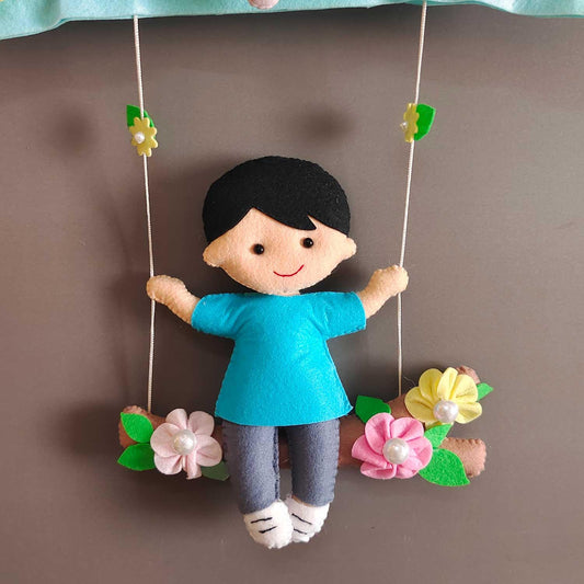 Boy on Swing - Felt Pillow Name Plate for Boys