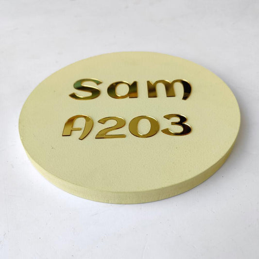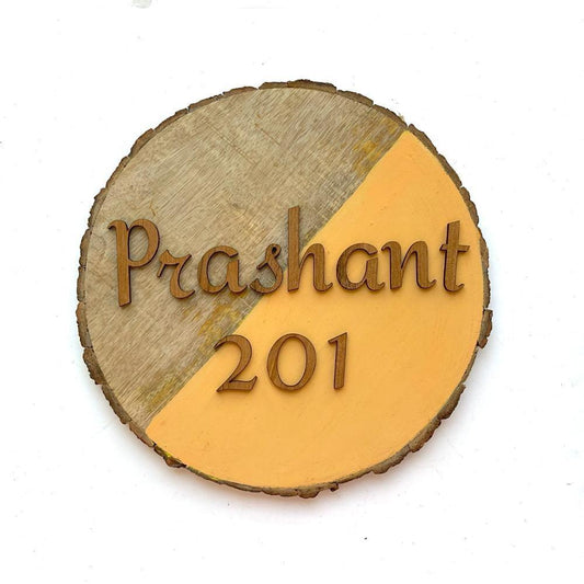 Wood Ochre - Modern Minimal Handcrafted Round Nameplate