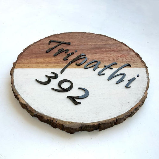 Wood Pearl - Modern Minimal Handcrafted Round Nameplate