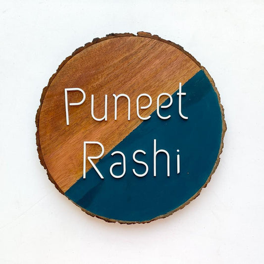 Wood Navy - Modern Minimal Handcrafted Round Nameplate