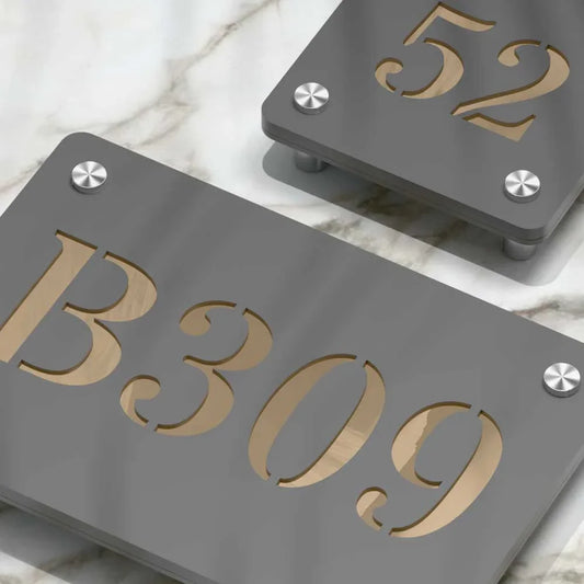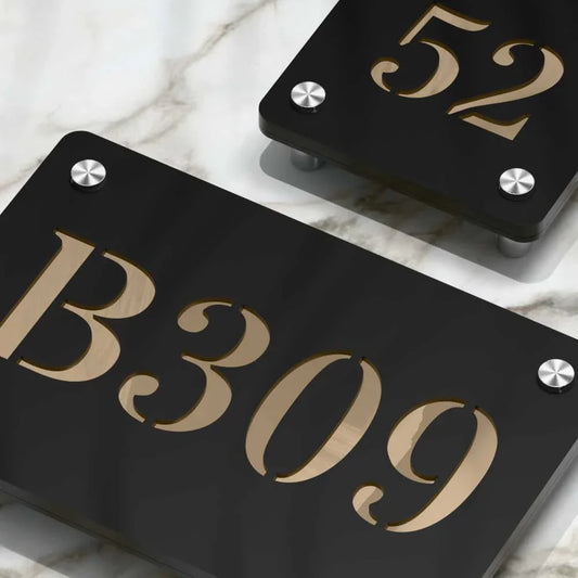 Each of our house number and address signs are thoughtfully designed to elevate your home's or office's entrance. From classic and elegant to modern and minimalist, we offer something to suit every style and taste. Our brass collection. If you looking for elegant opulent designs, brass numbers are the perfect choice. acrylic plates are ideal for exteriors. Minimalistic in design to add that classic touch to your entrance.