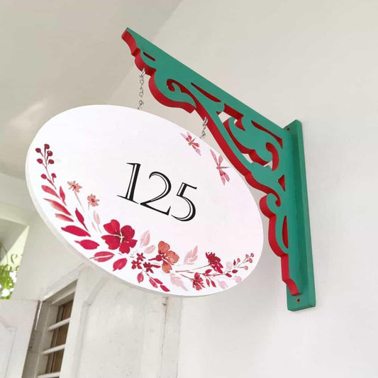 Elegance in Bloom - Hand-painted Floral Nameplate - Oval