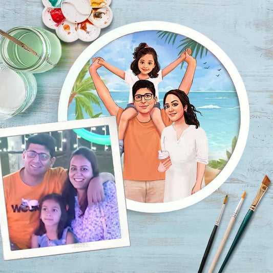 Photo Caricature Nameplate - Family Time - Tropical Oasis