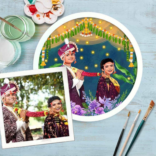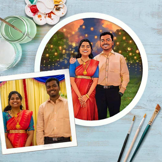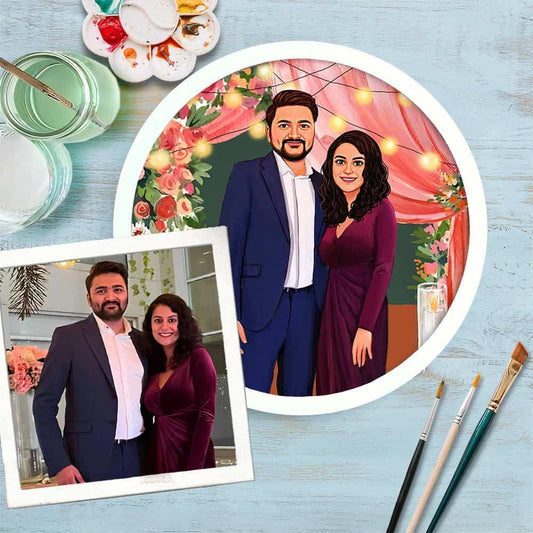 Photo Caricature Nameplate - Wedding Couple - Evening Lights