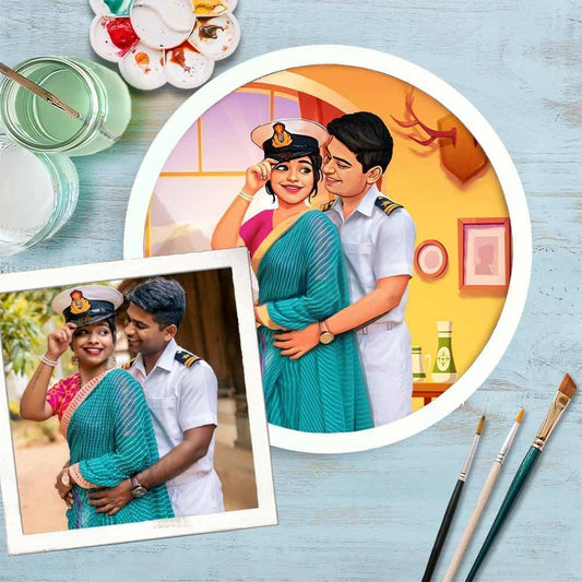 - Choose Your Style: Select either the classic photo display or the hand-painted caricature option.