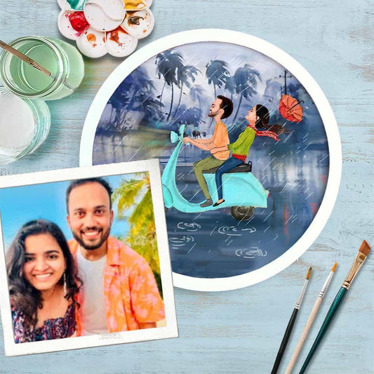 Photo Caricature Nameplate - Rainy Day Adventure - Scooter Ride