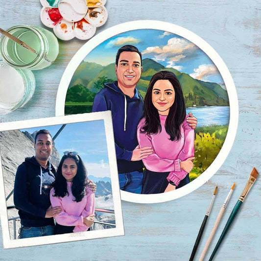 Photo Caricature Nameplate - Holiday Couple - Hill Station
