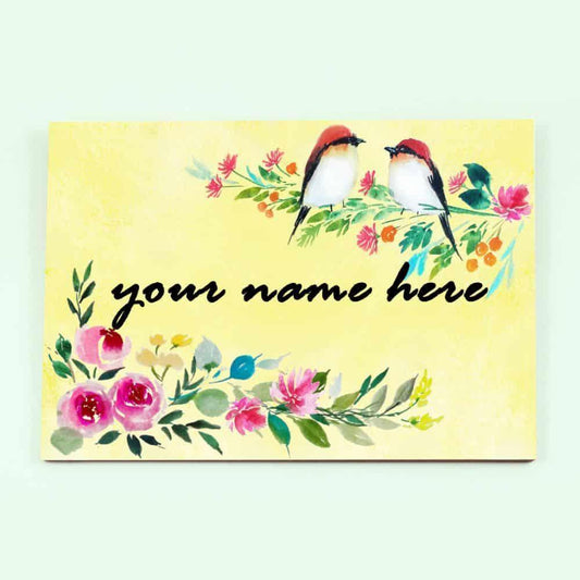 Two Perching Birds - Hand-painted Floral Nameplate - Rectangle