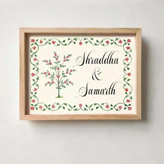 Veli - Handcrafted Framed Nameplate - Pink & Green