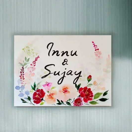 Gulmohar - Hand-painted Floral Nameplate - Rectangle