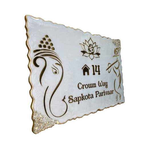 Krishnaganesh - Pearl White Swirl Design Resin Nameplate