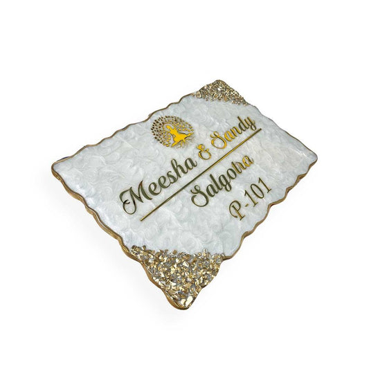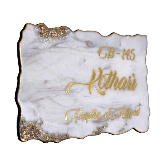 Salgotra's - Pearl White Swirl Design Resin Nameplate