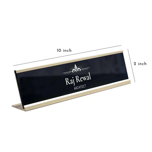 Slimline Royale Desk Name Plate - Gold Stand, Black Insert