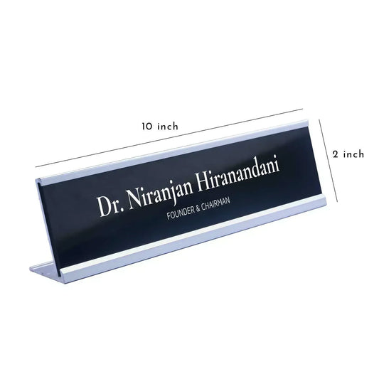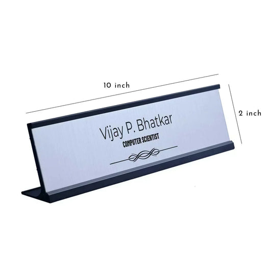 Slimline Royale Desk Name Plate - Black Stand, Silver Insert