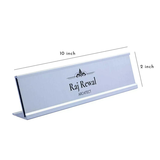 Slimline Royale Desk Name Plate - Silver Stand, Silver Insert