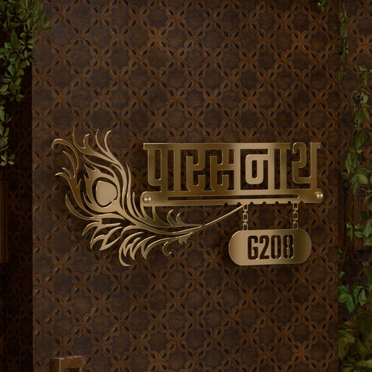 Mirror Gold Stainless Steel Mor-Pankh Nameplate