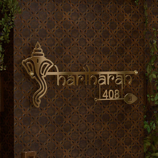 Mirror Gold Stainless Steel Ganesh Nameplate