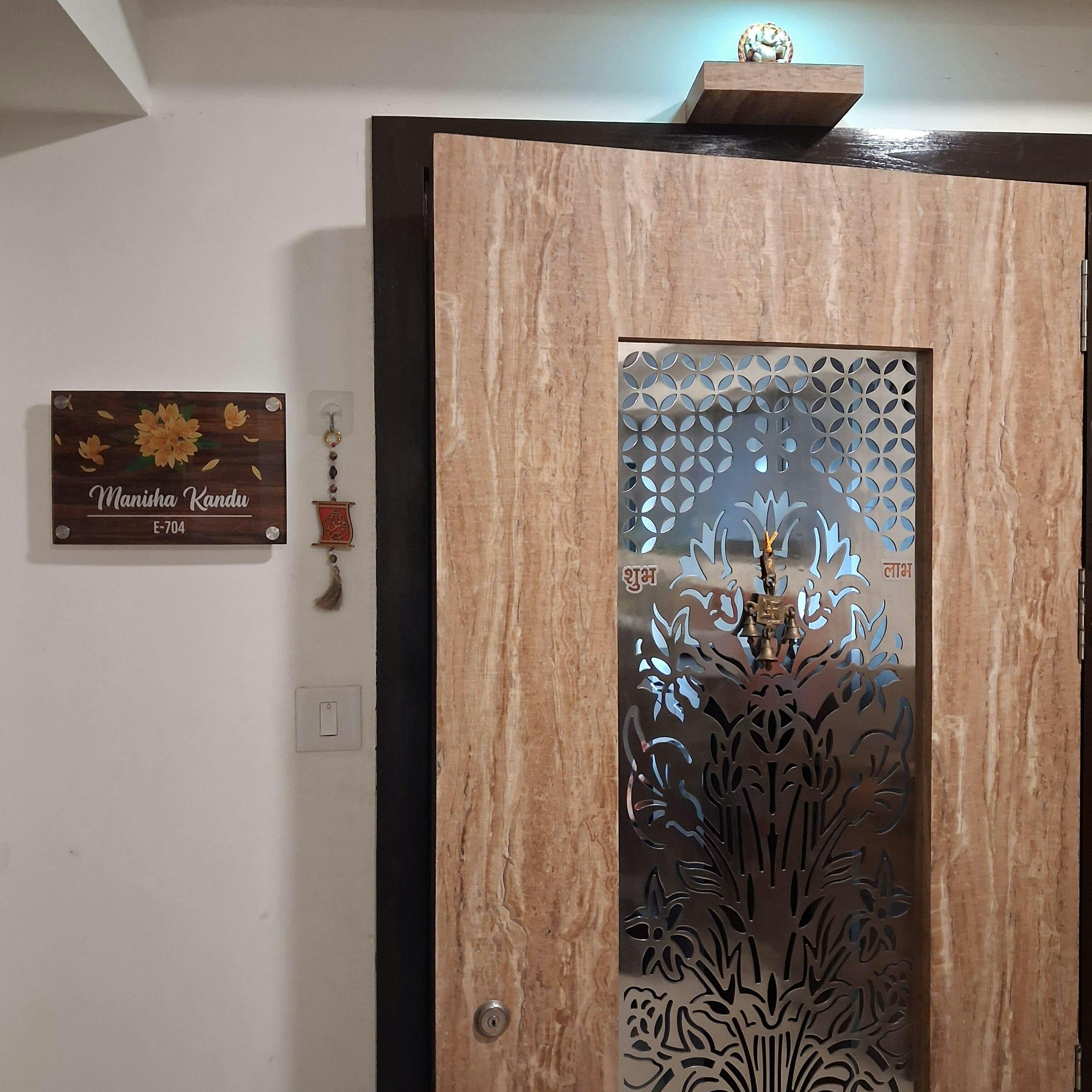 It is a visually appealing name board that lends elegance to our Main door. Our visitors too appreciate it. We are pleased with the caligraphy, wood, and art work.