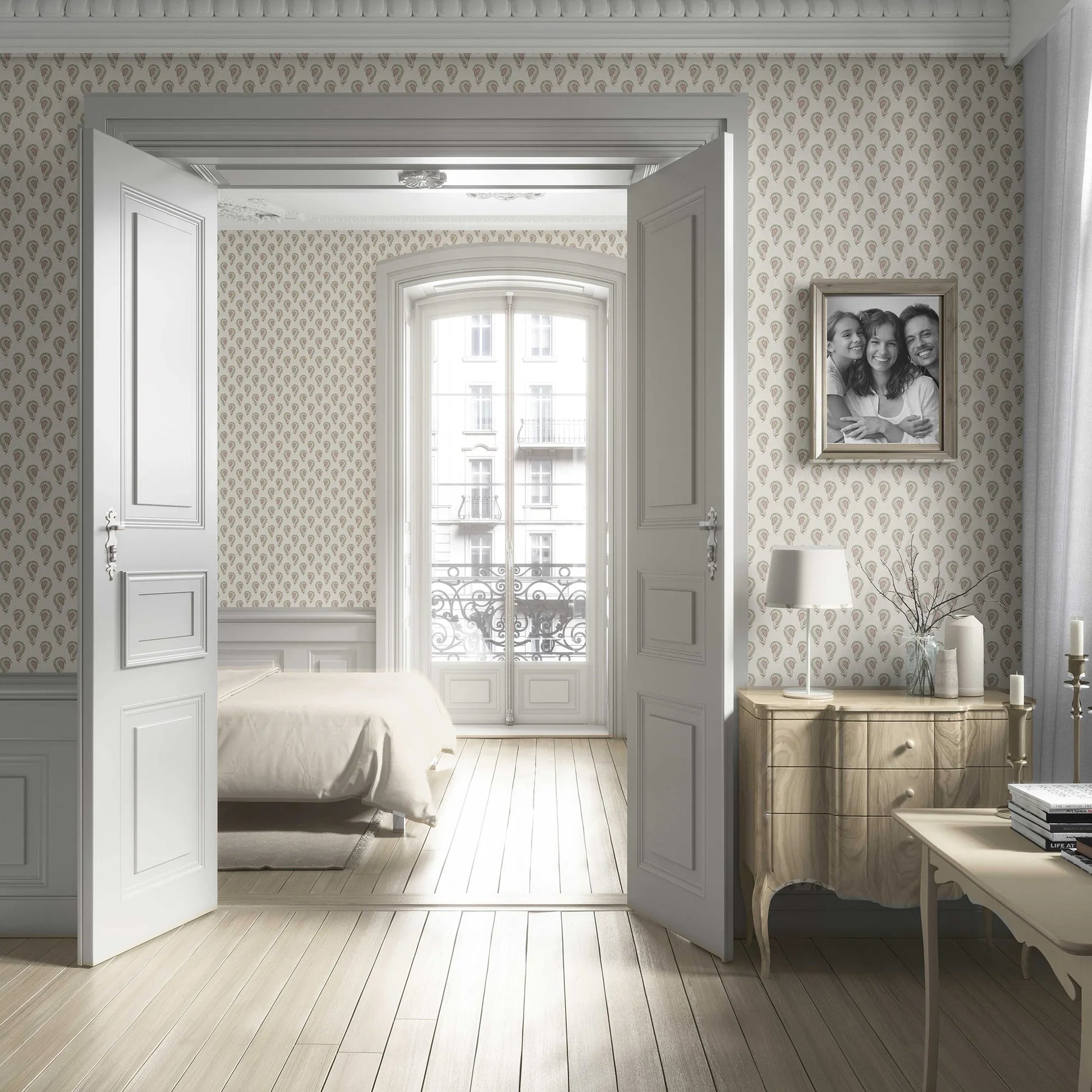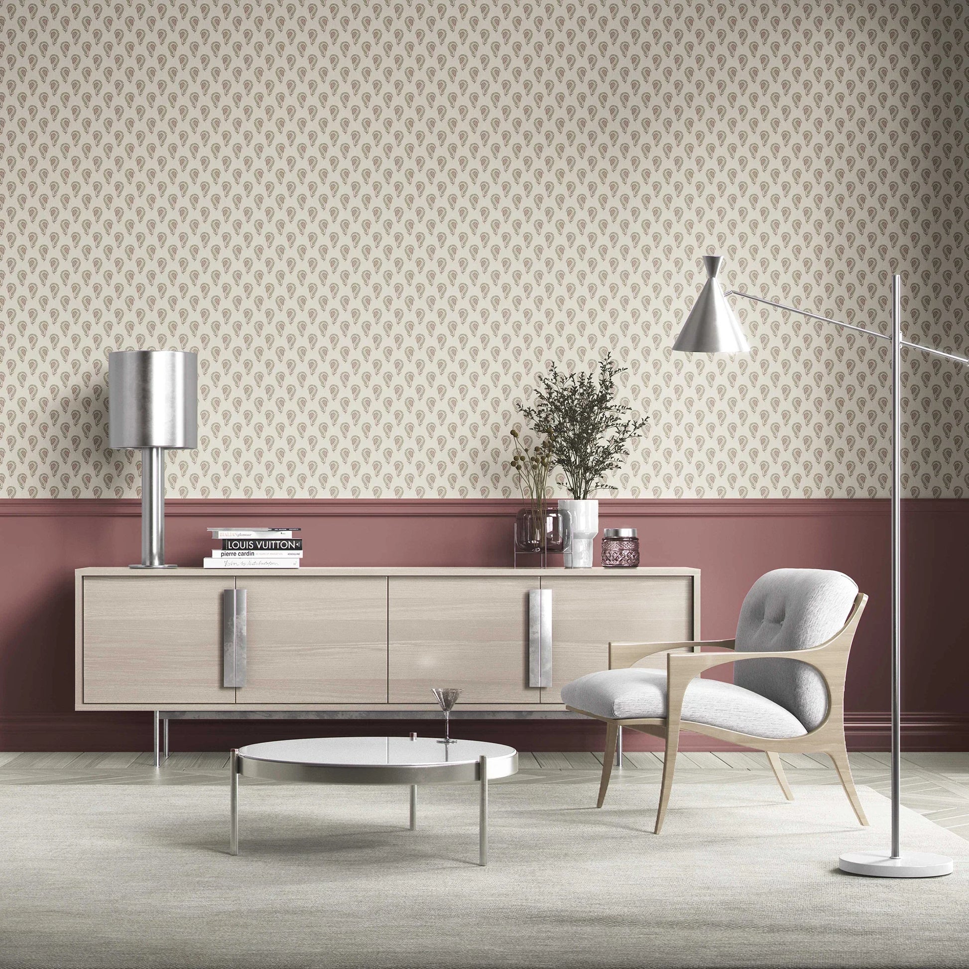Inspired by the grace of traditional Indian paisleys, the Ambika Wallpaper features delicately hand-drawn motifs framed in soft, organic outlines. Its timeless design brings subtle elegance to your interiors, perfect for accent walls or entire rooms where sophistication meets comfort. The fine detailing and textured background create a sense of artisanal craftsmanship, making it a versatile choice for both modern and classic spaces.