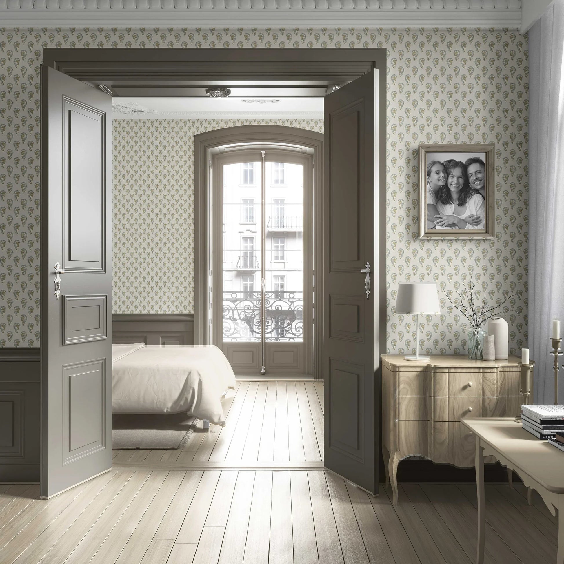 Inspired by the grace of traditional Indian paisleys, the Ambika Wallpaper features delicately hand-drawn motifs framed in soft, organic outlines. Its timeless design brings subtle elegance to your interiors, perfect for accent walls or entire rooms where sophistication meets comfort. The fine detailing and textured background create a sense of artisanal craftsmanship, making it a versatile choice for both modern and classic spaces.