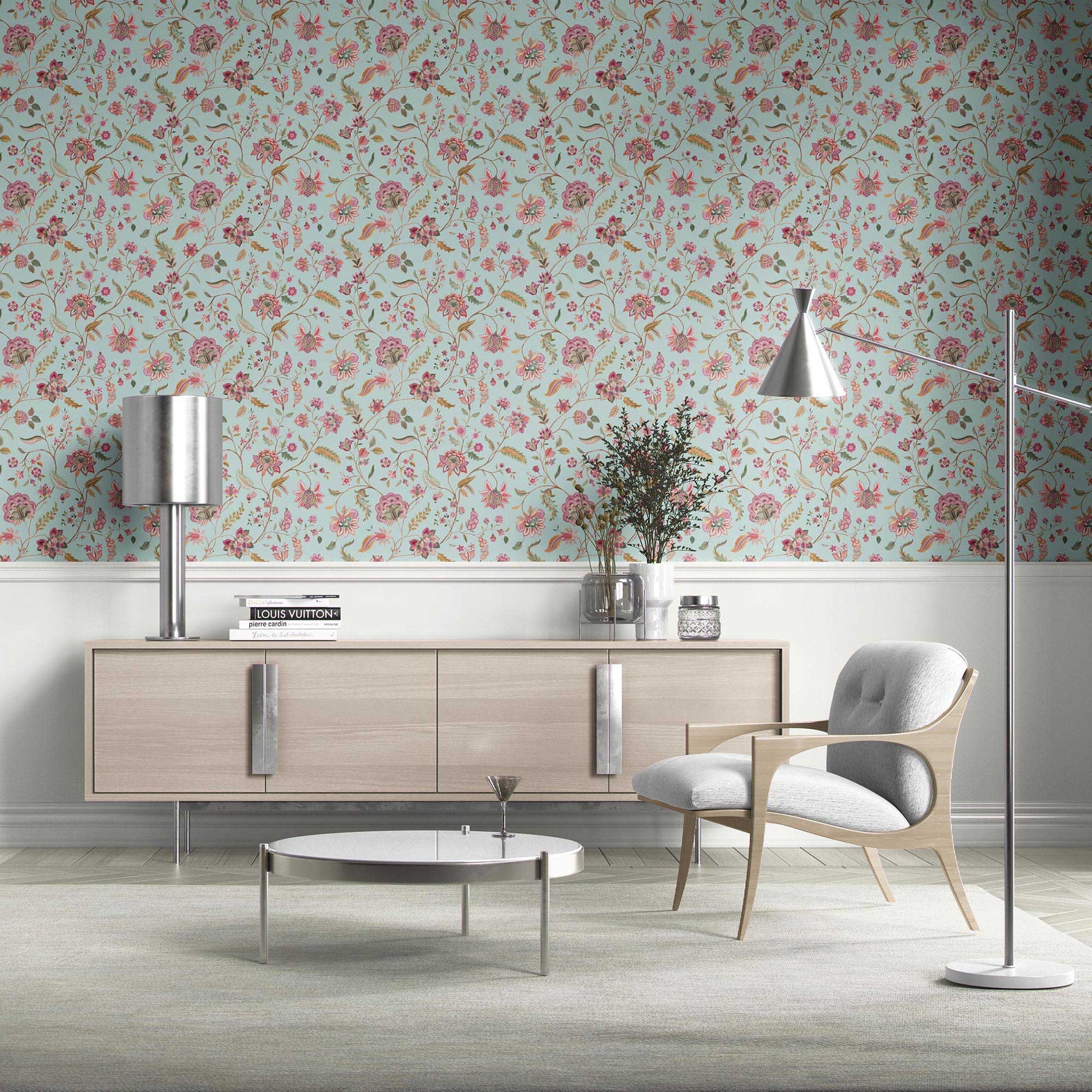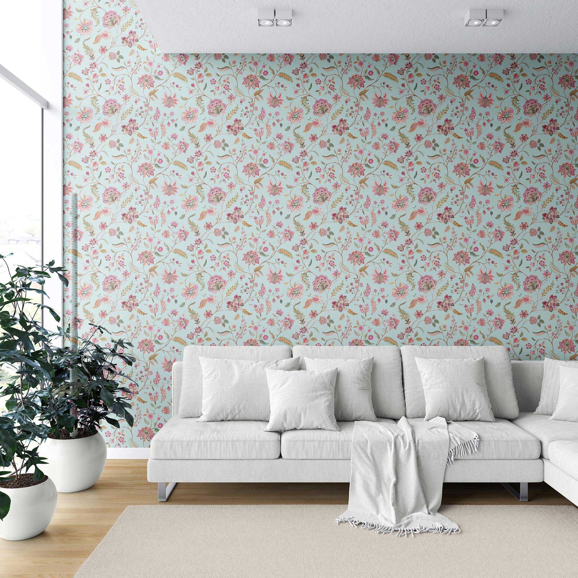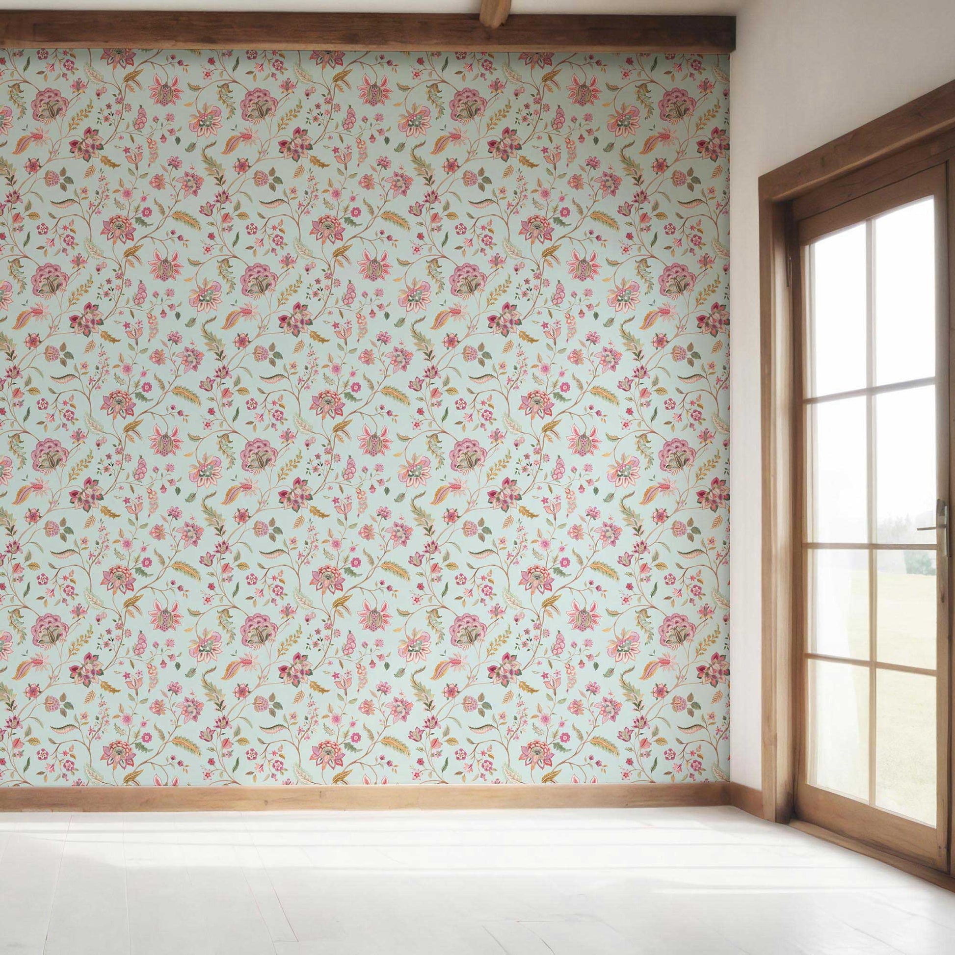 Available in 18 rich colourways, each roll transforms interiors into serene, palace-inspired sanctuaries while adding depth and texture to your space.