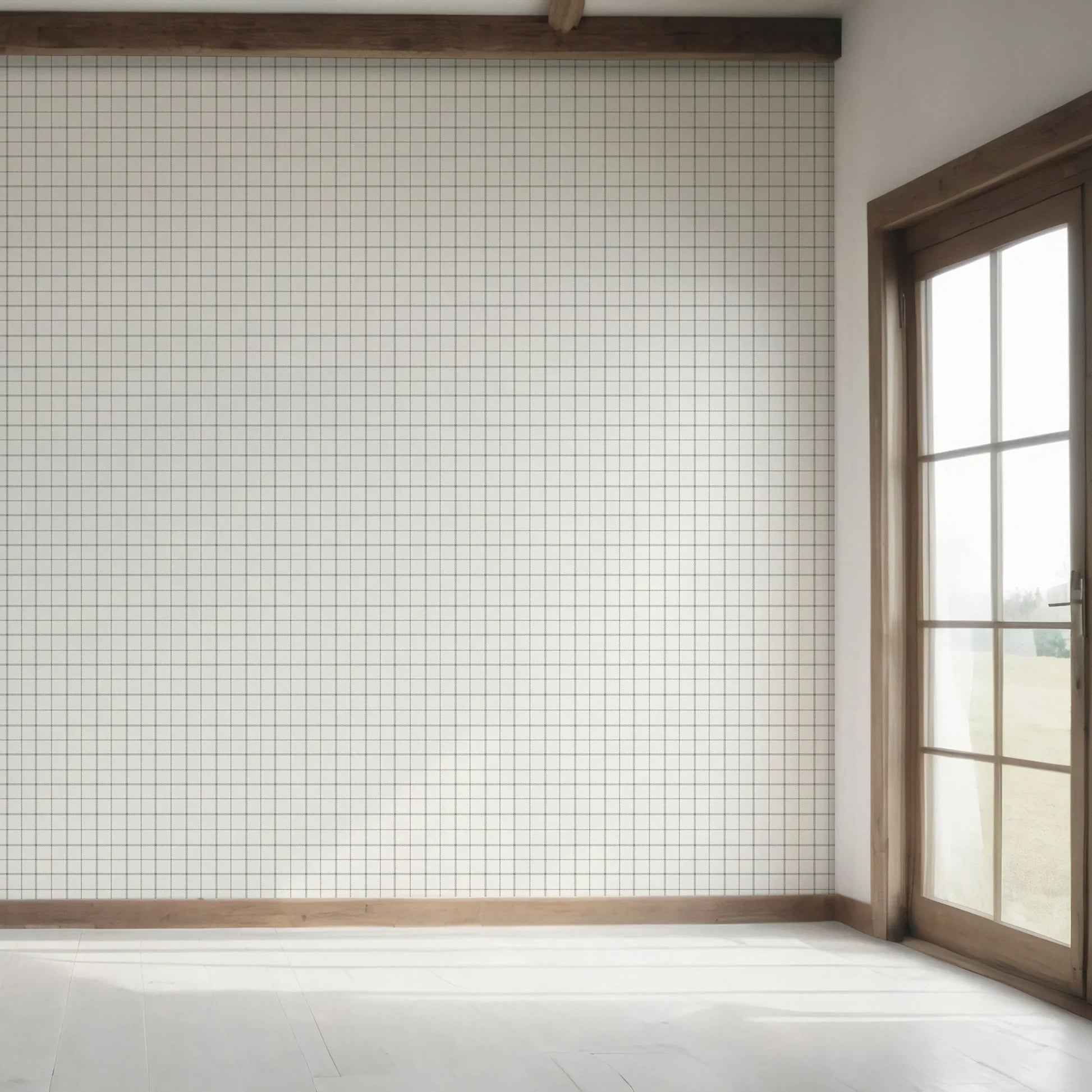 The pattern is precise yet soft, with subtle linework that evokes the texture of woven paper or fabric rather than a rigid geometric. As a Wallpaper, it adds depth without visual noise—making it ideal for living rooms, bedrooms, studies, dining areas, and thoughtfully designed commercial interiors.