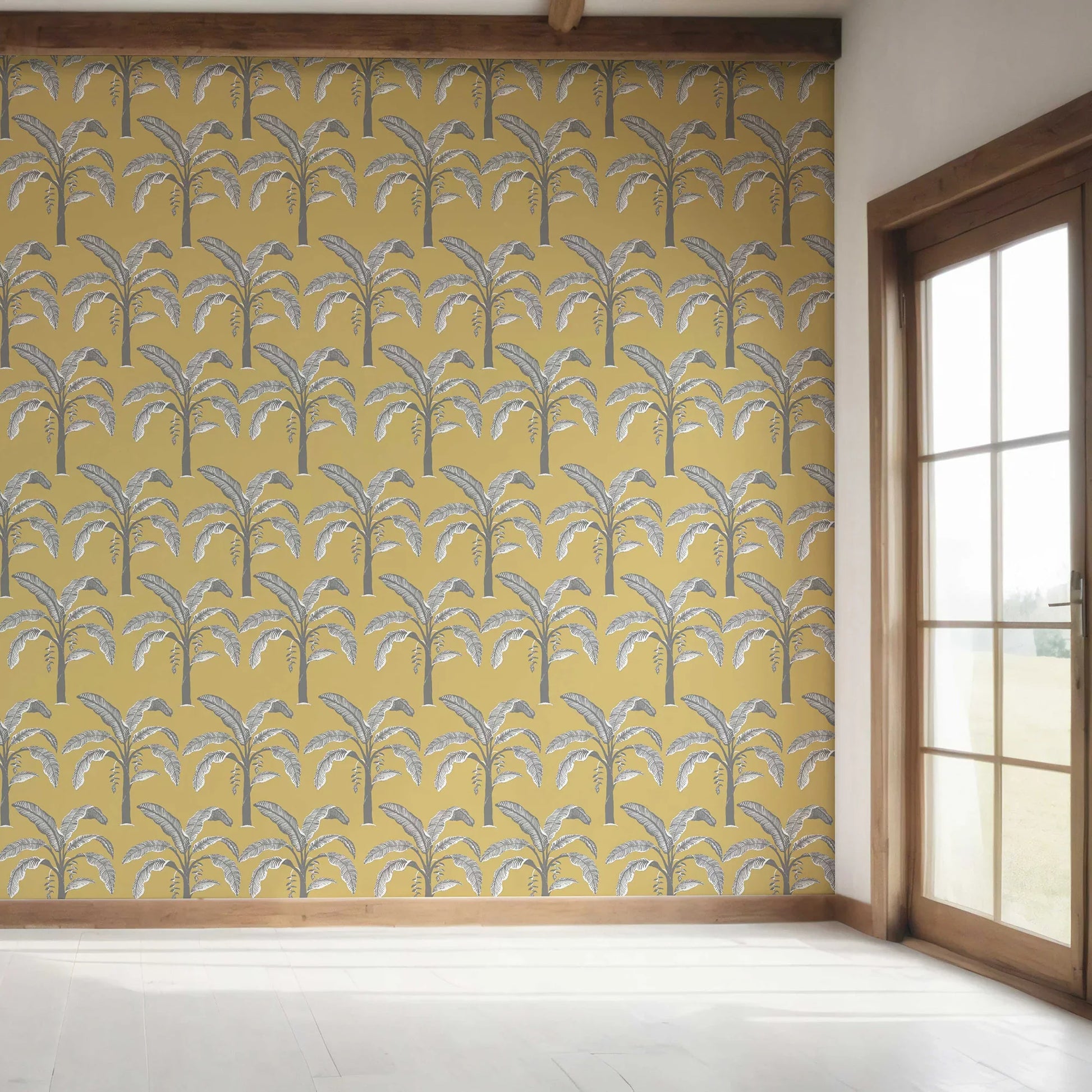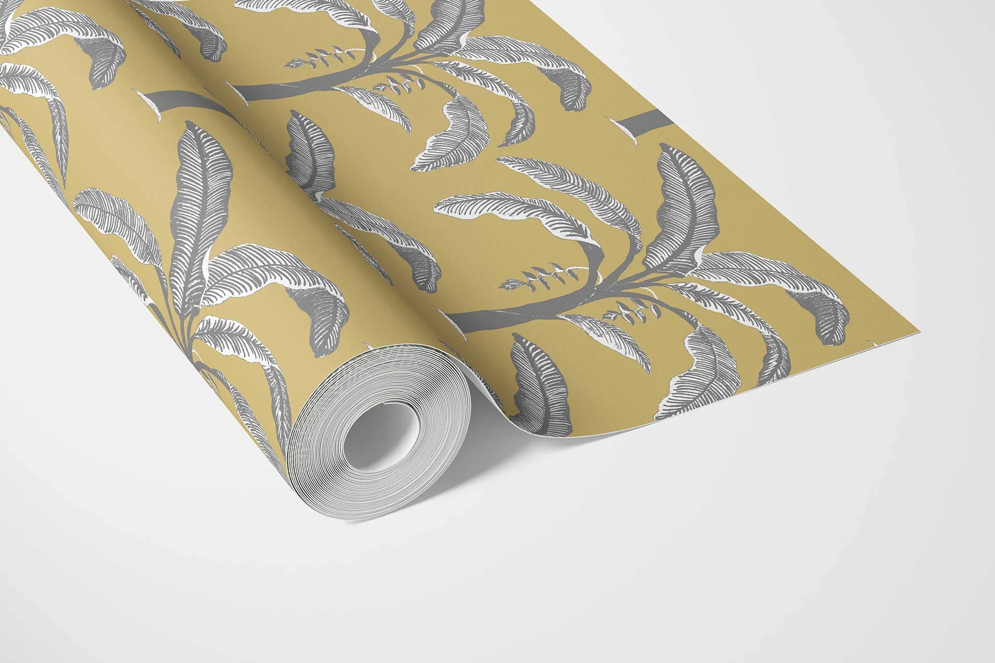 Bring a slice of the tropics into your space with the Bagh-e-Kela Wallpaper, a design that celebrates the timeless charm of banana groves. Inspired by lush botanical landscapes, this wallpaper features gracefully illustrated banana plants with intricate detailing that adds depth and texture to your walls.