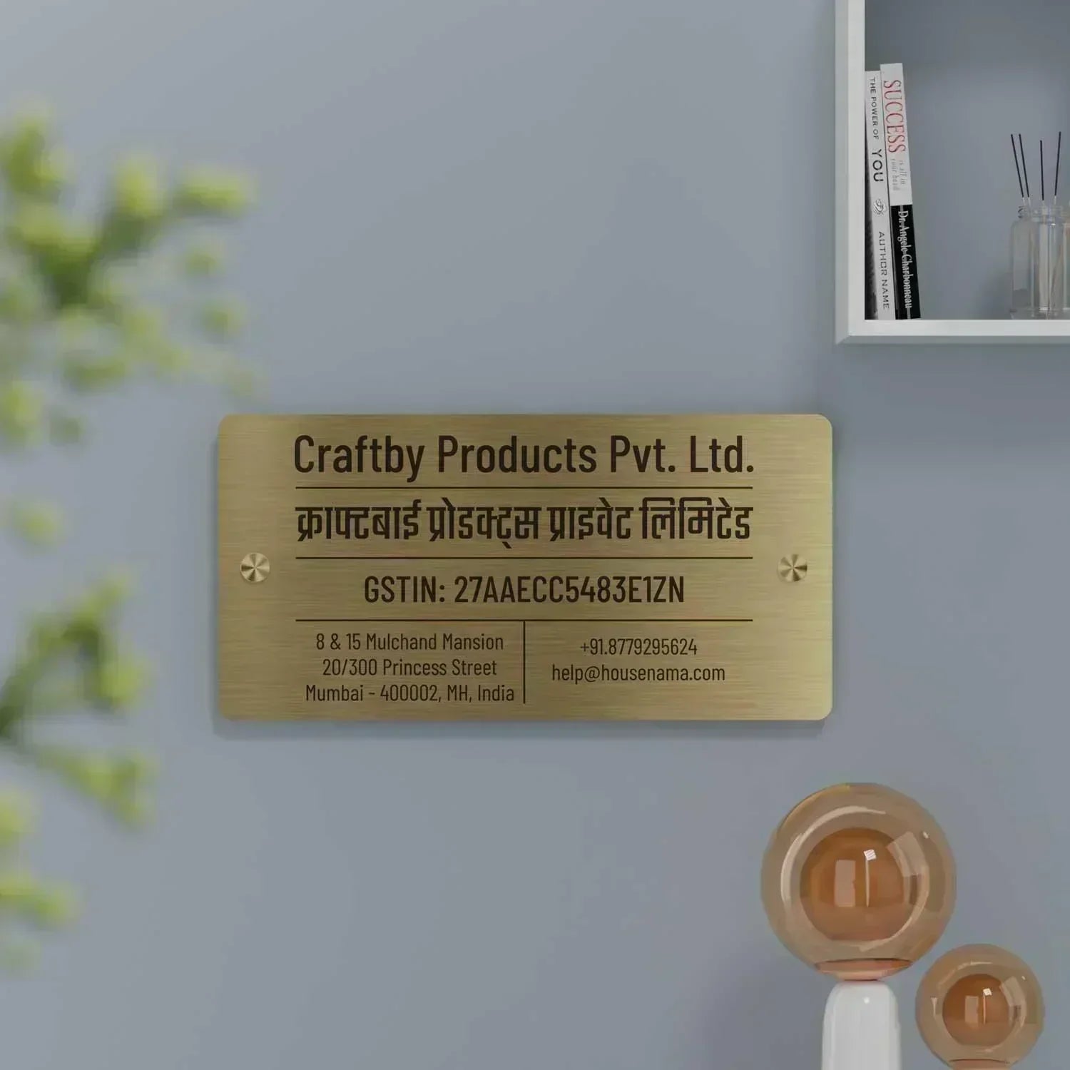 Barlow (Gold Stainless Steel) - Office GST Name Board with Address