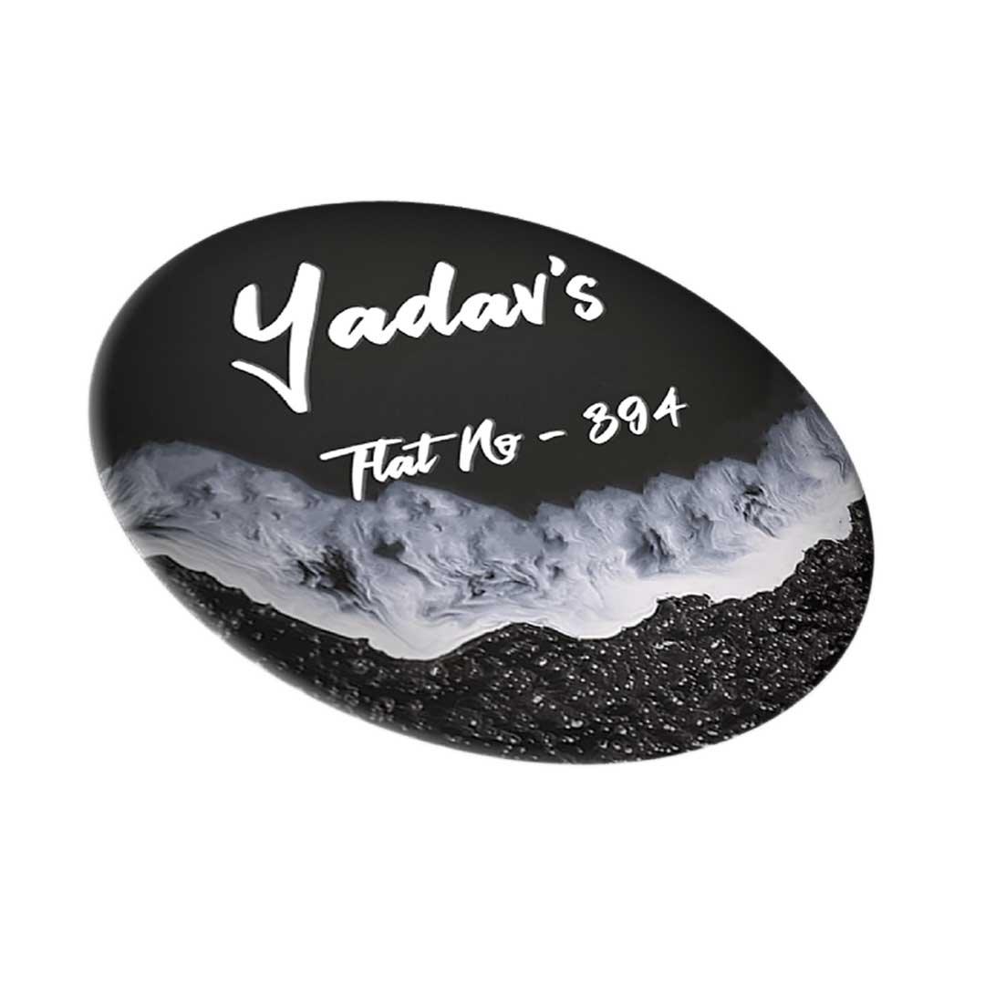 Immerse your entrance in the dramatic beauty of the Black Ocean Resin Nameplate. This circular, handcrafted piece features a captivating black ocean theme, meticulously created with premium epoxy resin and finished with a high-gloss sheen. Here are its salient features: