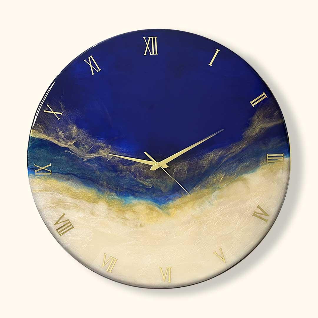Add a touch of celestial charm to your walls with our breathtaking Celestial Dusk Resin Clock. This handcrafted analog clock evokes the serene beauty of a starlit evening, featuring a luxurious blend of royal blue and metallic off-white tones, all sealed with a high-gloss finish. It’s a striking décor piece for your home, flat, or bungalow, bringing a sense of calm elegance to any room.