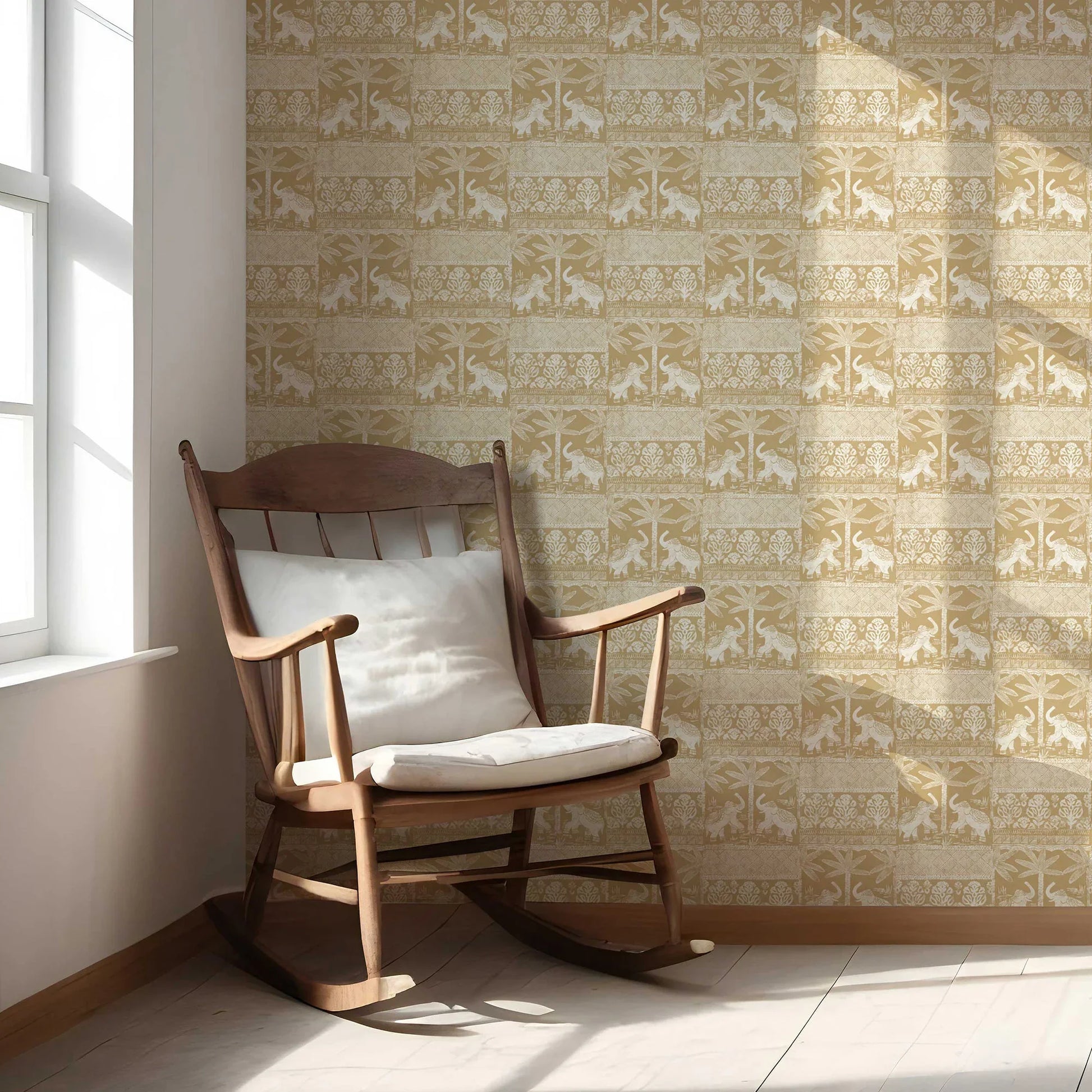 Inspired by the gentle majesty of elephants and the serene beauty of nature, the Elephant Grove Wallpaper collection brings timeless charm to your walls. Each design is a tribute to traditional block printing, featuring intricately illustrated elephants, palms, and forest motifs in a rhythmic layout. With earthy tones, rich indigos, and muted pastels, this wallpaper collection blends storytelling with sophistication—perfect for accent walls or full-room transformations. Ideal for those who seek heritage-inspired elegance in modern interiors.